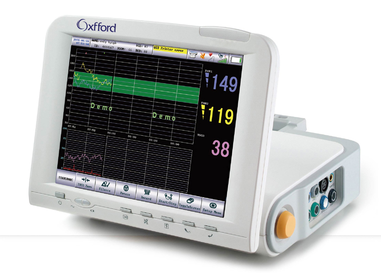 • Parameter: ECG/HR, RESP, NIBP, SpO2, PR, TEMP, TOCO, FHR, FM.