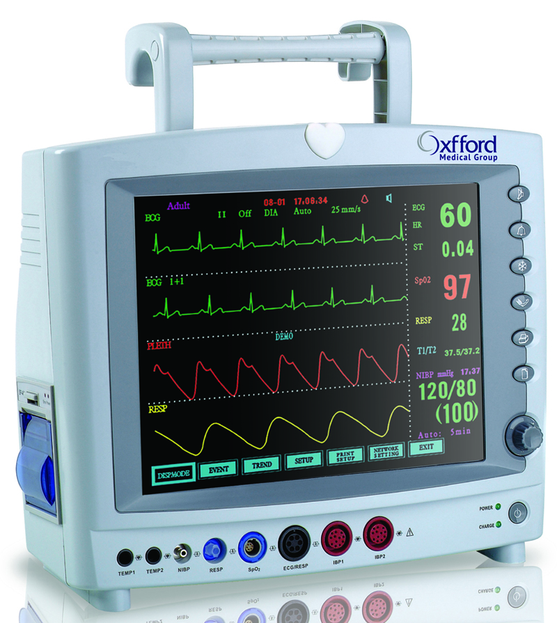 • Optional configuration: Thermal printer, Nellcor SPO2, Masimo SpO2, 2-IBP, Main stream/side stream ETCO2, CO, AG, CSI, wireless network, rechargeable battery, remote control function